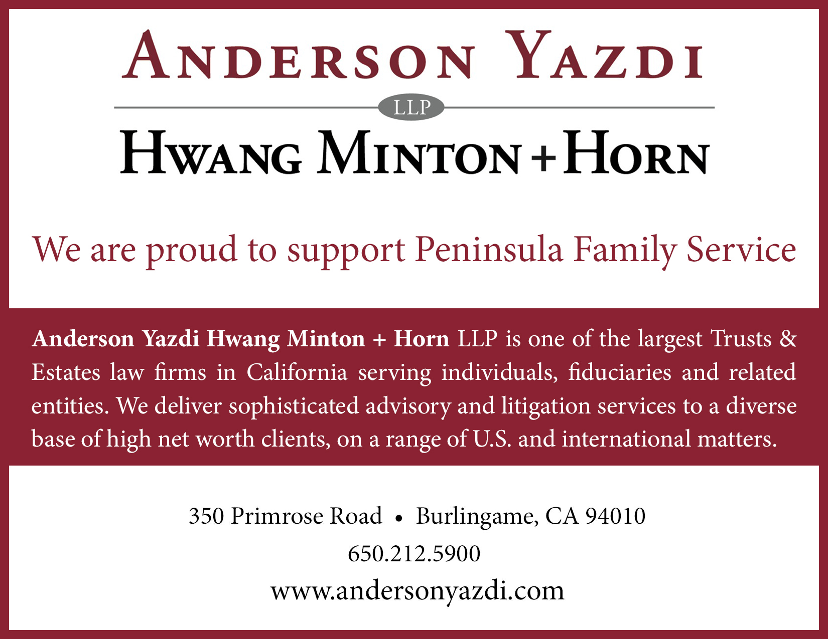 Anderson Yazdi Hwang Minton + Horn LLP